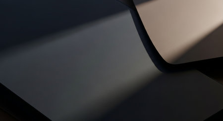 Abstract composition of dark, curved surfaces with dramatic light and shadow creating depth.