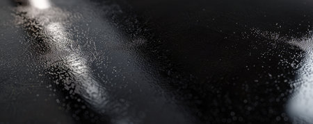 A dark textured surface with subtle, tiny bubbles and soft reflections, appearing smooth and slightly wet or dewy.