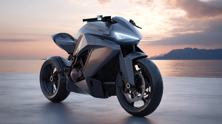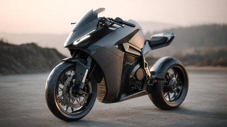 Futuristic Motorcycle Design Displayed at Sunset, a Sleek and Powerful Machine