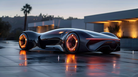 Sleek Futuristic Supercar Parked at Dusk Showcasing Elegance and Technological Prowess