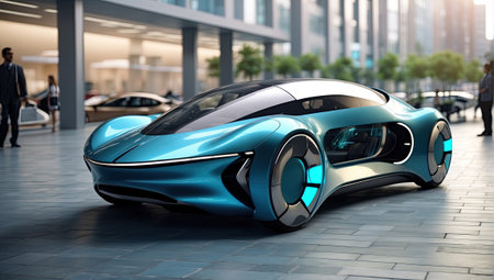 A Futuristic vehicle design with sleek curves and modern architecture
