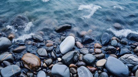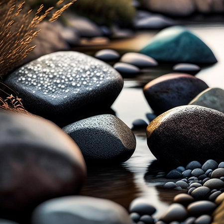 AI Generated. Rocks in River Smooth and Weathered Close up of rocks in a river