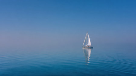 A serene sailboat glides effortlessly across the calm waters under a clear blue sky, capturing the essence of tranquility and adventure in nature.