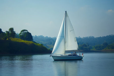 Elegant sailboat on the lake embracing the relaxed water lifestyle during leisure time