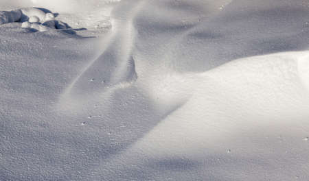 Drifts of fresh snow sparkling in the sun on a frosty day. Nature winter background.