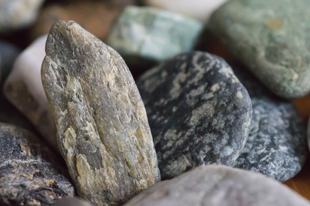 Stones on the beach, closeup of photo with selective focus