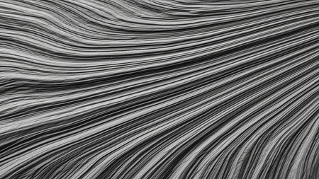 An abstract monochrome texture featuring rippling waves of fine parallel lines on a surface.