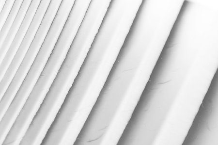 A white surface with a corrugated texture, featuring parallel ridges and grooves. The texture creates a dynamic, industrial feel with strong linear elements.