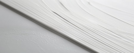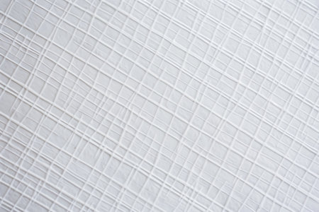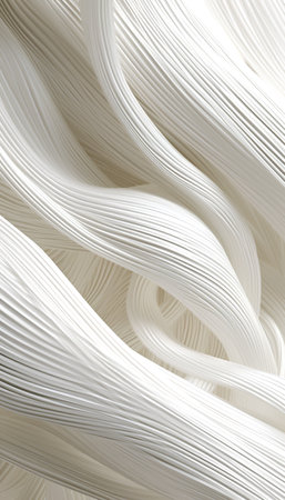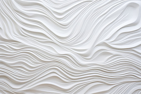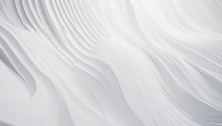 A close-up view reveals crisp, white layers of paper arranged in a rhythmic pattern, creating soft shadows and highlights that enhance the minimalist aesthetic.