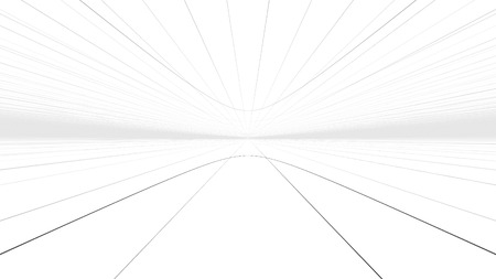 A holographic 3d illustration of a hypersonic tunnel highway serving as a time portal from one reality to another. A mysterious network of lines rush forward in the white space background.