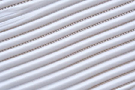 Flowing white fabric creates a serene atmosphere in a minimalist setting illuminated by soft daylight. The gentle curves and folds evoke a sense of calmness and simplicity.