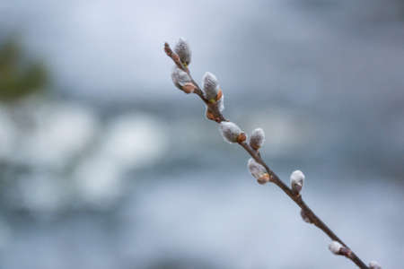 pussy-willow willow branches in bloom, spring concept, Easter holiday, background