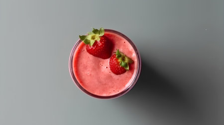 A refreshing strawberry smoothie served in a tall glass, adorned with whole berries for a delightful visual appeal.