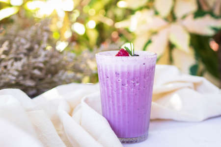 Lavender smoothie with coconut milk, blueberry. Vegan beverage