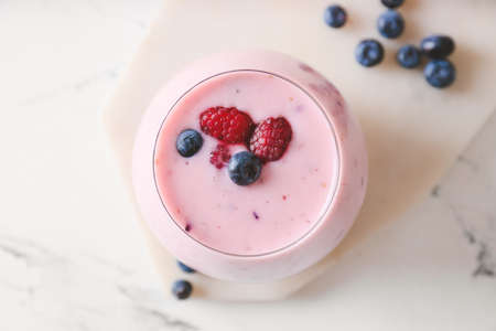 Mixed berry (Raspberry, strawberry and blueberry) with yogurt smoothie, Selective focus and Close up image
