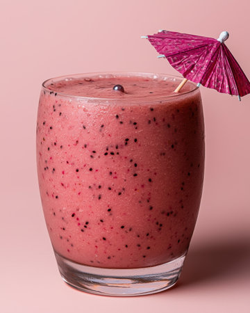 Pink smoothie in glass with paper umbrella
