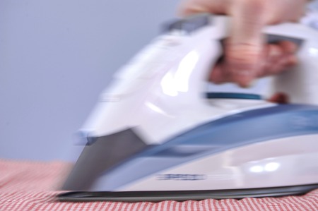 hand of woman ironing clothes on the table