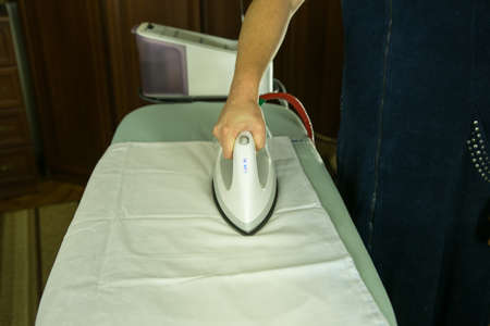 Housekeeper ironing the cloth
