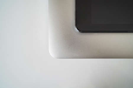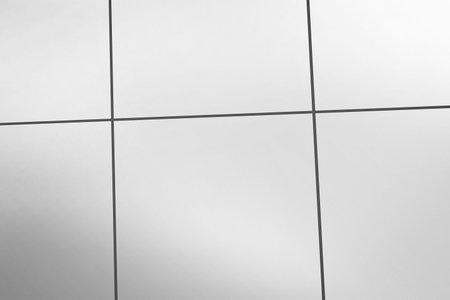 Close-up of white clean right-angled tiles. Photo with depth of field