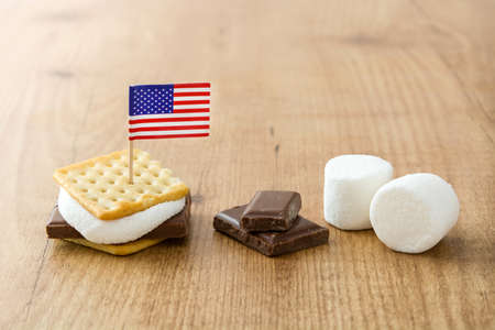 Homemade smores on wooden table