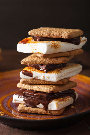 Homemade smores with crackers, marshmallows and chocolate