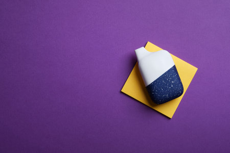 School eraser on lilac background