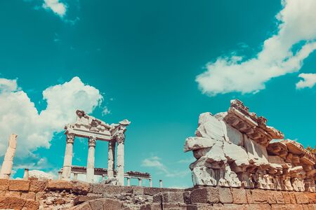 Temple of Trajan in ancient city Pergamon, Bergama, Turkey in a beautiful spring day