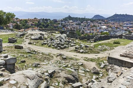 PLOVDIV, BULGARIA - JULY 5, 2018: Panoramic cityscape of Plovdiv city from Nebet Tepe hill, Bulgaria
