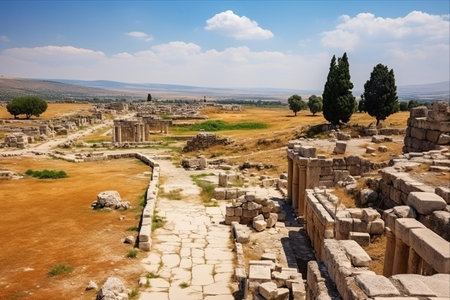 Denizli, Turkey - October 2019: Laodikeia ancient city ruins in Pamukkale, Denizli, Turkey