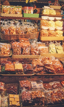 Sanya, Hainan Island, China - January 14, 2020: Sweets and sweets in packages in the Chinese market.