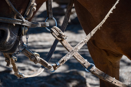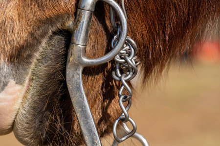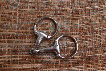Lever Snaffle when controlling horse measuring with two rings equipment for horses, old on foot side view
