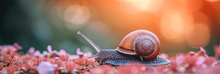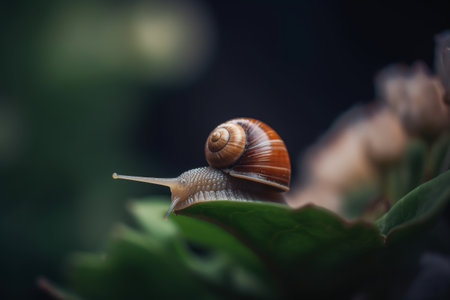 macro shot capturing a snail moving on a leaf, illustrating nature and wildlife theme perfect for banners