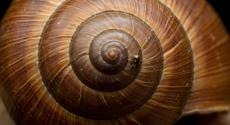 Intricate Spiral Snail Shell with Tiny Beetle Macro