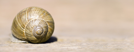 Slow web concept - banner of a resting snail, shell with blank, copy space