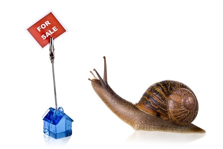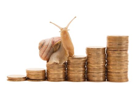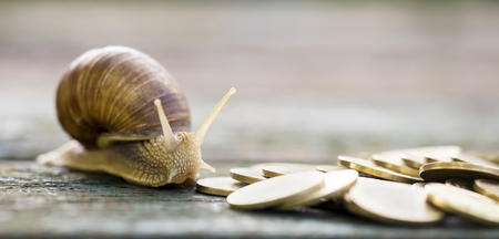 Big snail crawling up the mountain, a symbol of growing interest in business