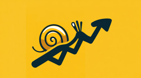 A whimsical snail illustration showcasing growth and progress through an upward arrow, set against a vibrant yellow background. Perfect for creative projects.