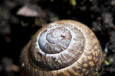 macro of one small garden snail on ground
