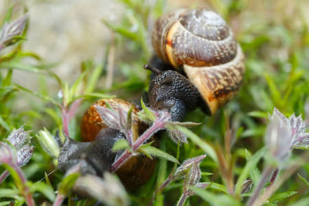 Cepaea nemoralis snails live in the wild