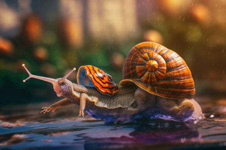 A couple of snails riding on top of each other. Generative AI image.