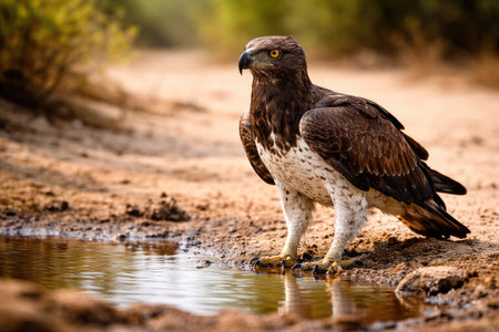 Wild Eagle Standing Near Water in Natural Habitat Wildlife Concept