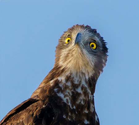Eastern Imperial Eagle first frontal plane, with a piece of bait in peak