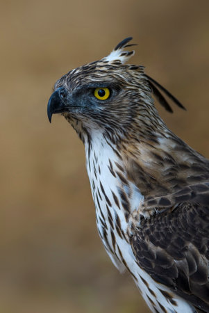 Close up of a Saker Falcon. It is a small bird of prey in the family Accipitridae. It is found widely distributed in Asia and Africa. It is also called the little banded goshawk.