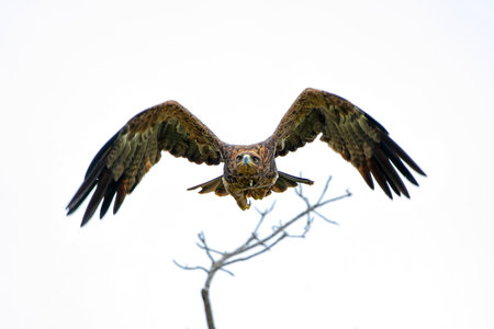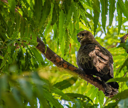 Indian Eagle,the Kite sitting on the tree branch in the defth of field picture. India. 2019.