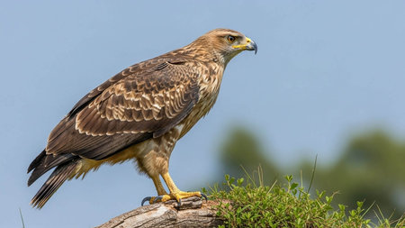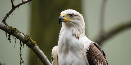 Majestic hawk perching on branch, eyeing prey generated by artificial intelligence generated by artificial intelligence