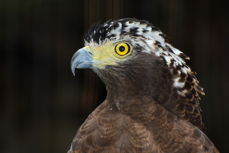 Crested serpent eagle in captivity at zoo. Spilornis cheela is a bird of prey that is found in forested habitats across tropical Asia