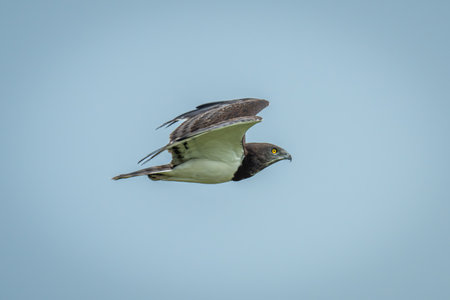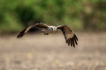 Brown Snake Eagle (Circaetus cinereus) flying away in the Kruger National Park in South Africa