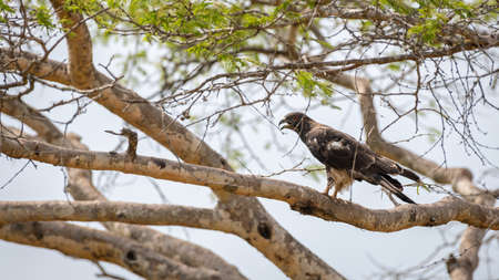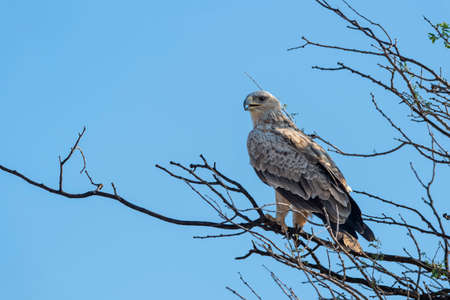 A brown snake eagle (Circaetus cinereus) perched on a tree, Kruger National Park, South Africa