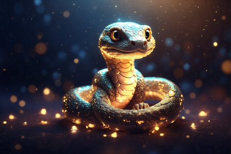 Stylized Snake with Sparkling Scales and Glasses in a Neon-Infused Dreamscape AI