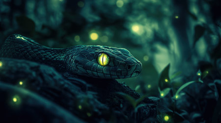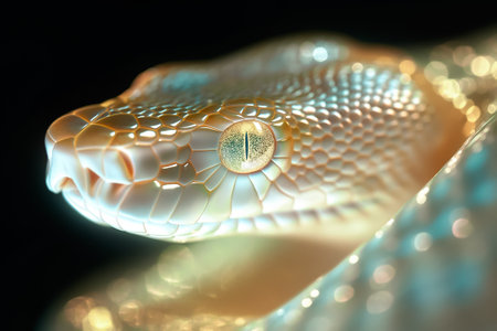 Close-up of a Green-Eyed Snake with Glowing Scales