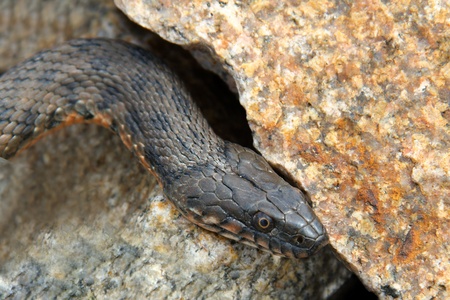 Big head of grass snake in stones